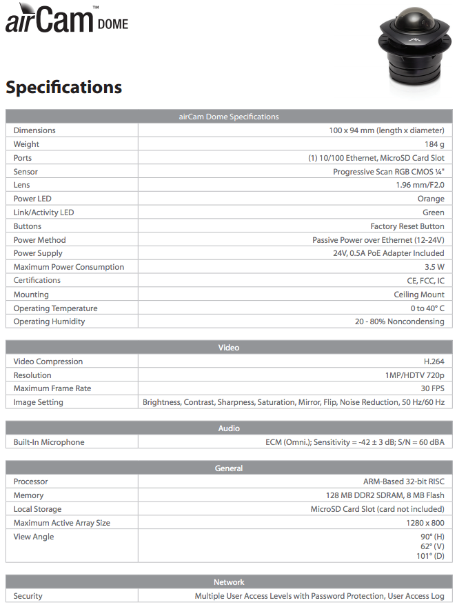 The AirCam line of H.264 megapixel cameras combine advanced industrial design, powerful performance with market leading cost-effectiveness.