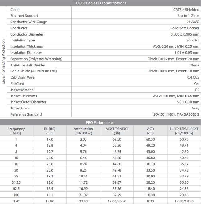 - Internal foil shielding and drain wire for increased ESD damage protection