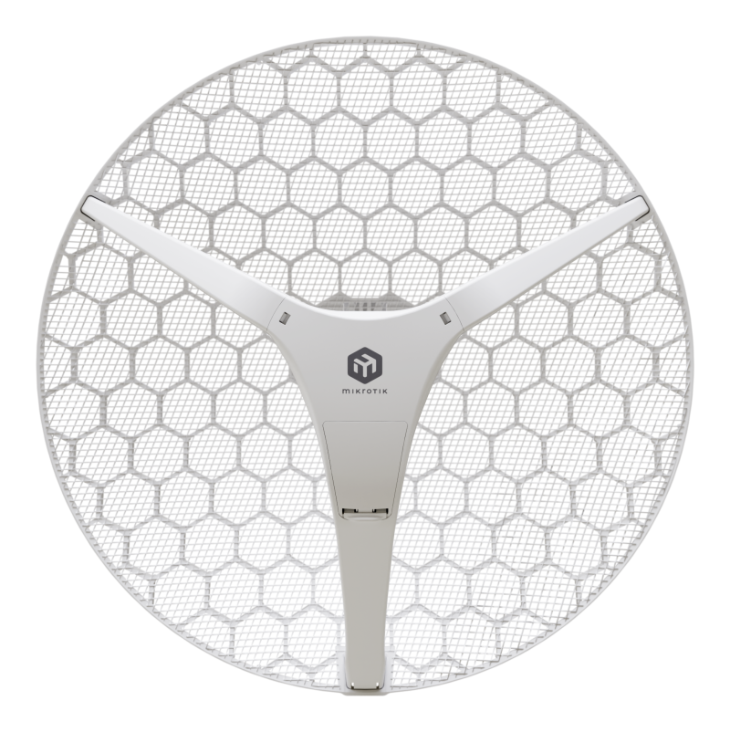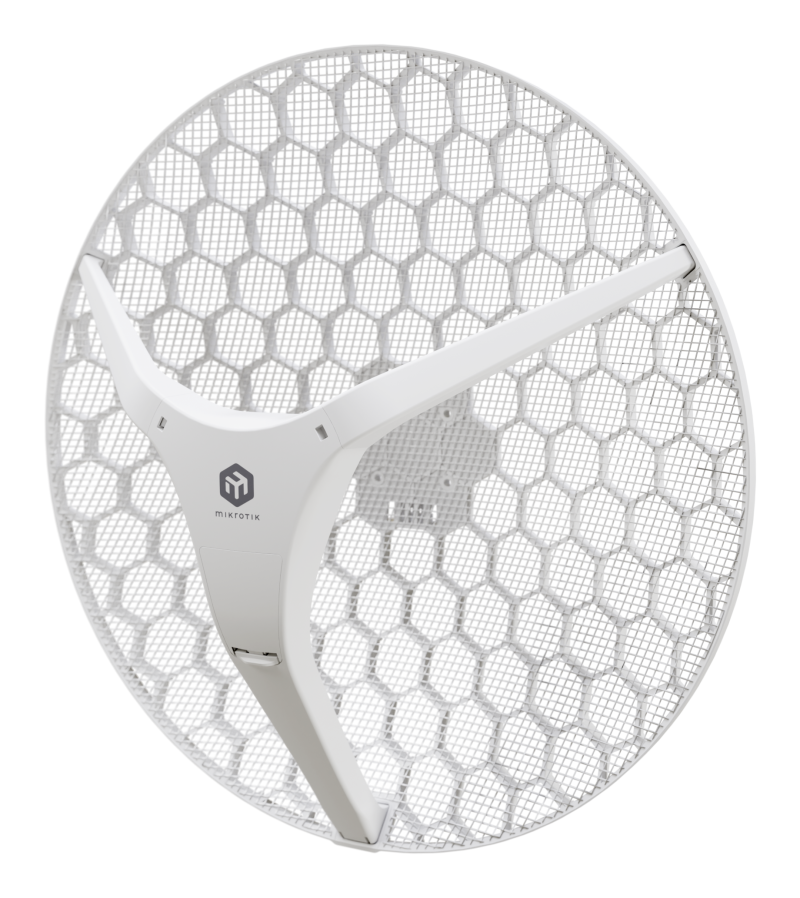 The LHG XL 5 ax is a lightweight wireless device with Wi-Fi 6 support for the 5 GHz band, featuring an integrated 27 dBi high-gain grid antenna that ensures excellent wind resistance. It is ideal for point-to-point links or as a client unit for long-distance connections. The unit is equipped with a Gigabit Ethernet port that supports passive PoE power supply in the range of 12–28 V.